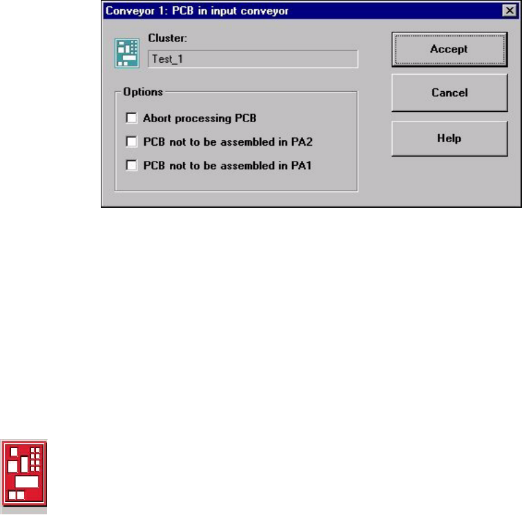 If the PCB is located on the input conveyor, the following dialog box is opened.