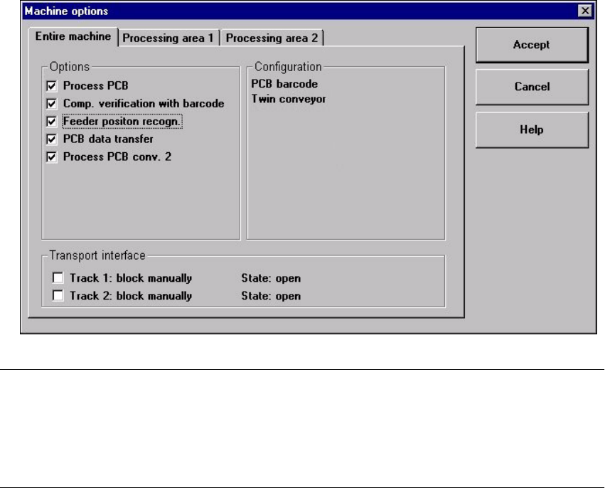 Used to call the single functions for PCB conveyor 1 (= right conveyor track in the case of twin