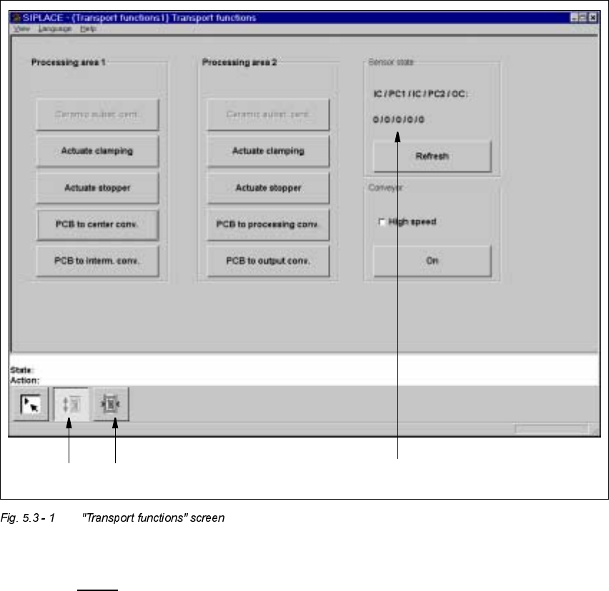 User’s Manual SIPLACE HS-50 5 Single Functions Software Version S R.501.xx Edition 01/99 5.3 Single functions, Transpo rt 171 7 UDQVSRUWIXQFWLRQVVFUHHQ The trans port functio ns are u sed for c heckin g and adj…