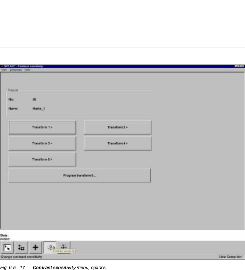 6 Vision functions User Manual HS-50 6.5 Teach Fiducial Software-V ersion 5.01 E dition 01/99 224 &RQWUDVW6HQVLWLY LW\0HQX The &RQWUDVWVHQVLWLYLW\ menu provid es opti ons for optim izing the c ontrast be…