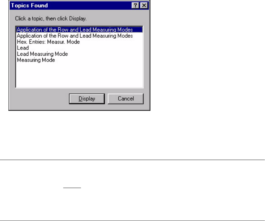 system window. If further help topics are associated with the selected index entry, the