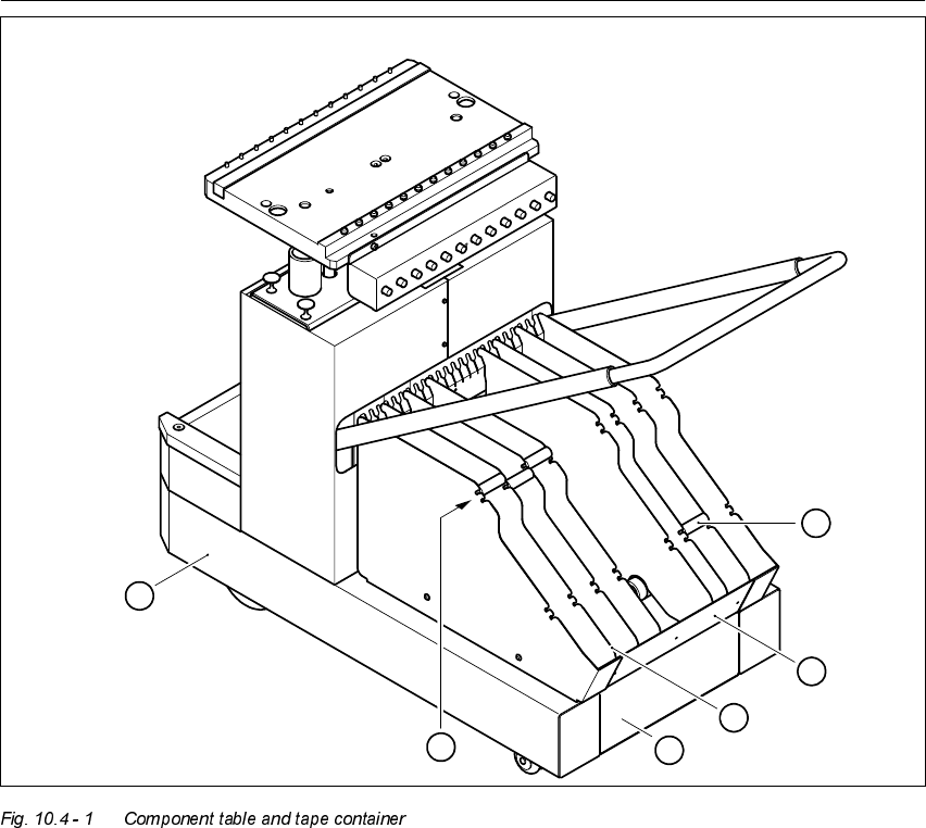 User Manual HS-50 10 Component han dling Software-Version 5.0101/99 Issue 10.4 Tape container 369 the feeder modules operate reliabl y . (1) Compone nt table (2 ) Spi ndle pos ition for 15" ree ls (3) W aste tape…