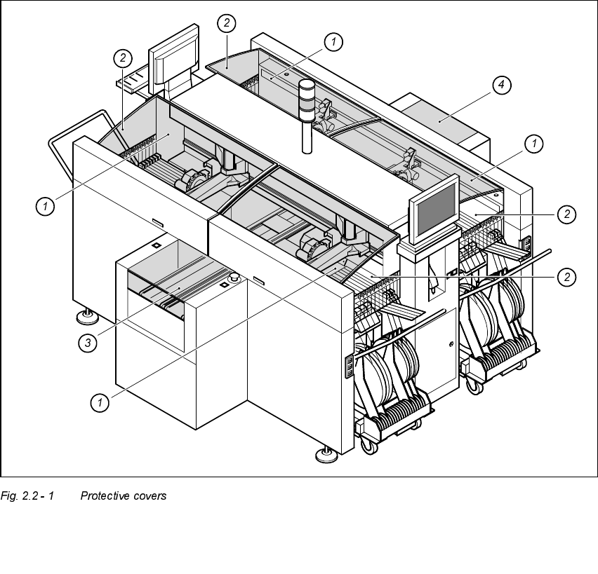 If one of the protective covers is folded up or one of the covers on the PCB conveyor is raised, the