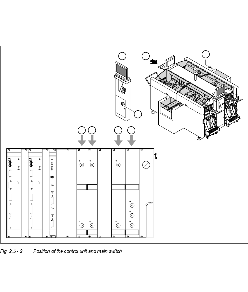 When the placement system is switched off at the main switch (item 1 in the diagram) or the power