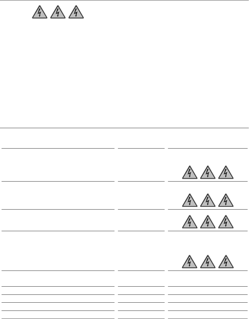The following table shows the voltages of the individual modules when the main switch is switched