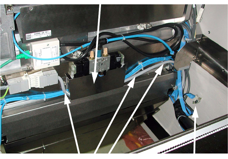 Run the cable under the metal cover on the pneumatic valve (see photograph below).