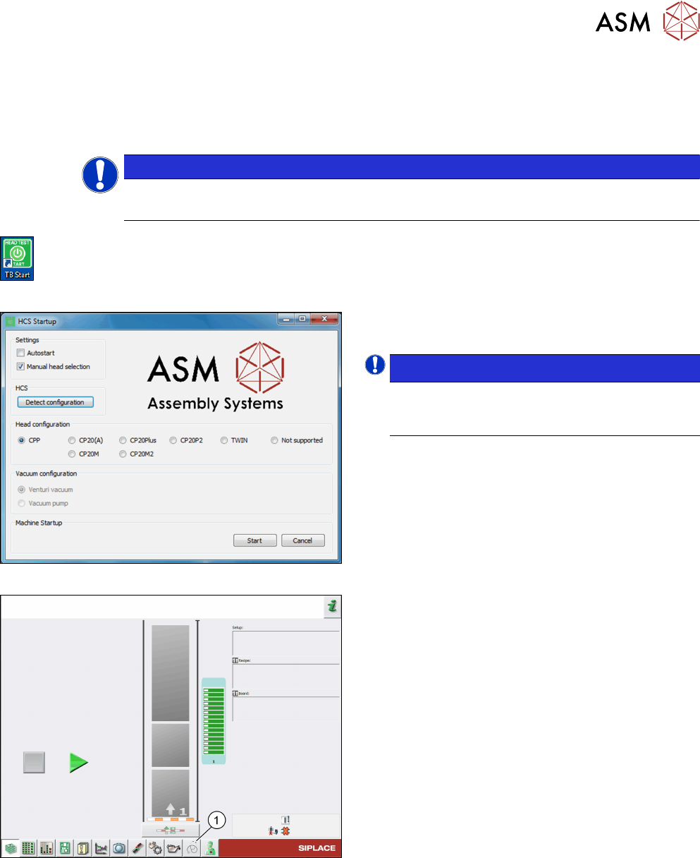 ► On the HCS Startup screen, select the head and