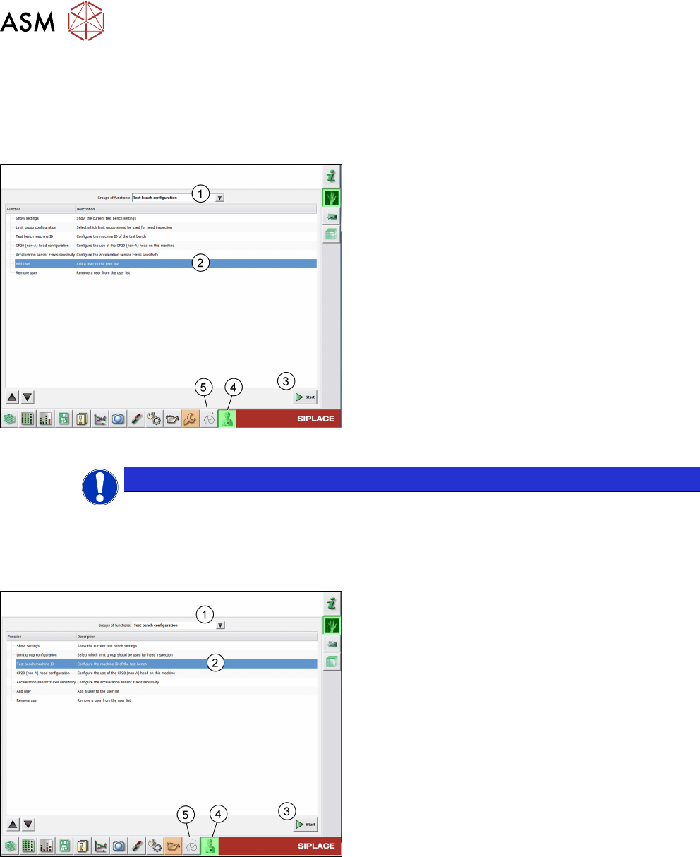 ► Select the Test bench machine ID function(2).