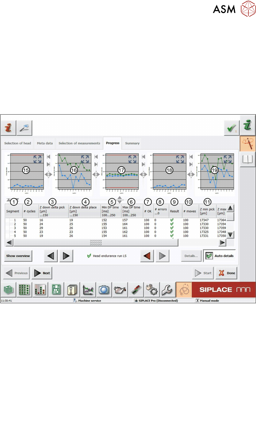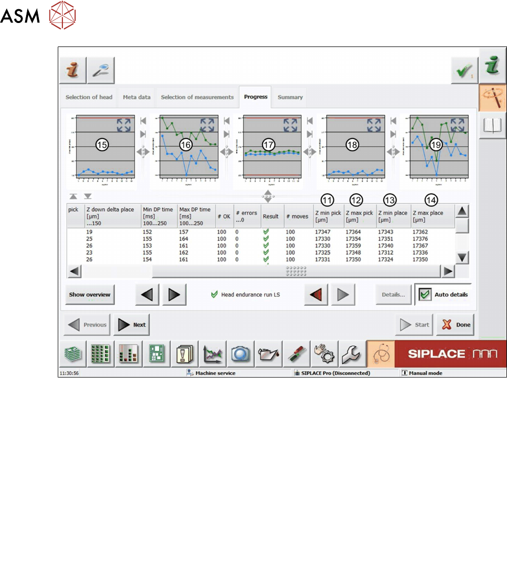 6 Description of the test results 6.16 Head endurance run LS 66 Software Manual SIPLACE Head Verification 03/2018 Fig.50: Result view – Head endurance run LS 2/2 11 Zminpick is the smallest z-pick value determined. 12…