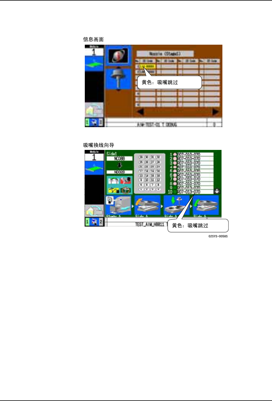 这些显示画面以黄色的背景色显示跳过的吸嘴。