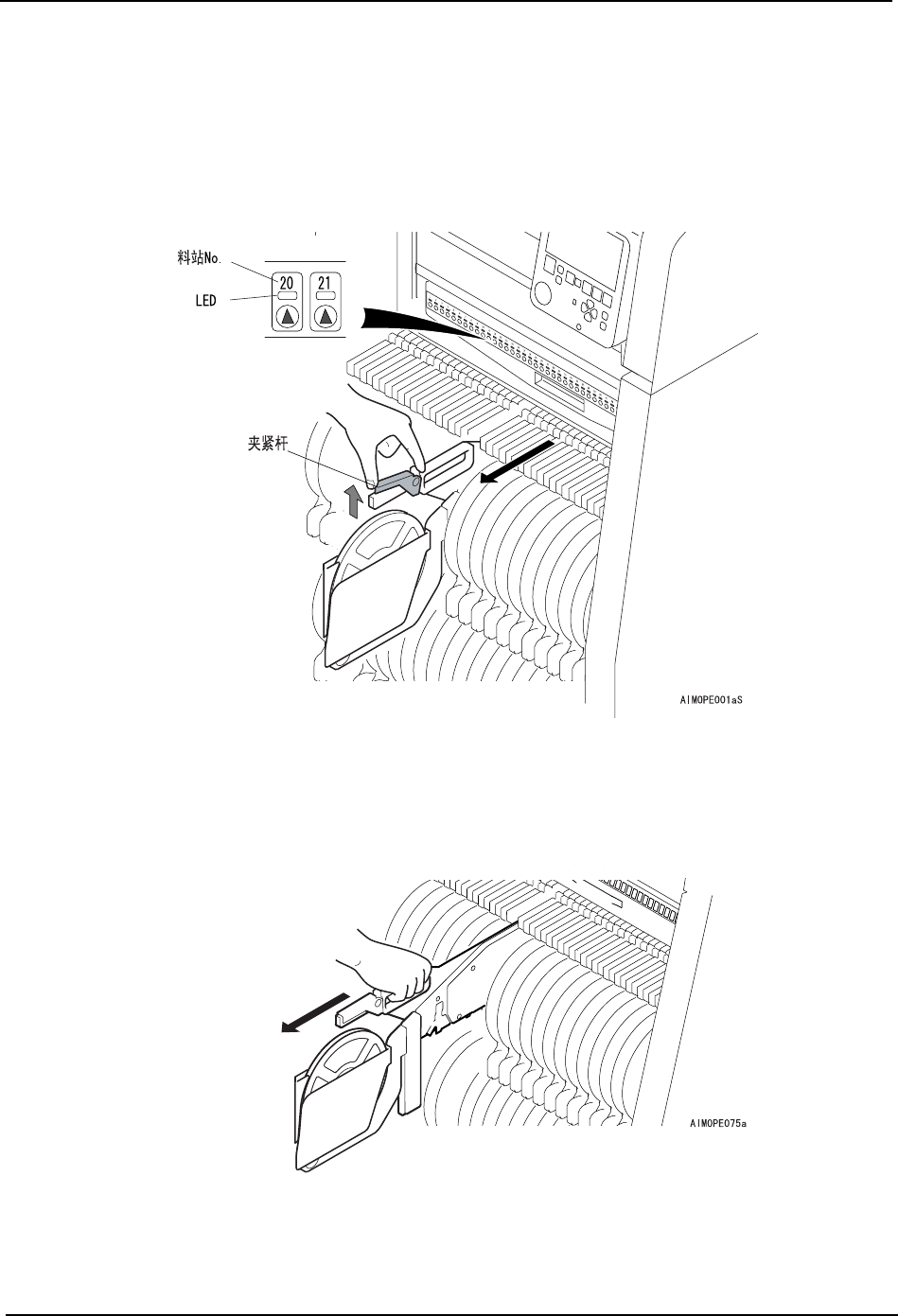 料器时如下图所示,提起供料器的夹杆后夹块松开,使供料器的电源 OFF。