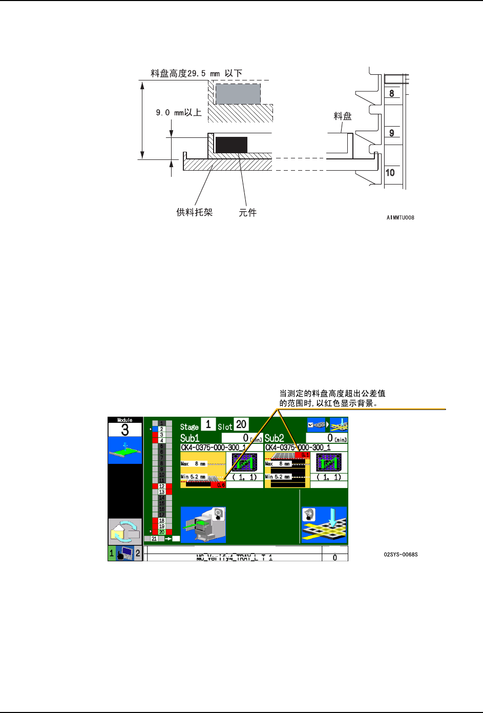 a. 被安装的料盘的高度是否在料盘容许范围内。