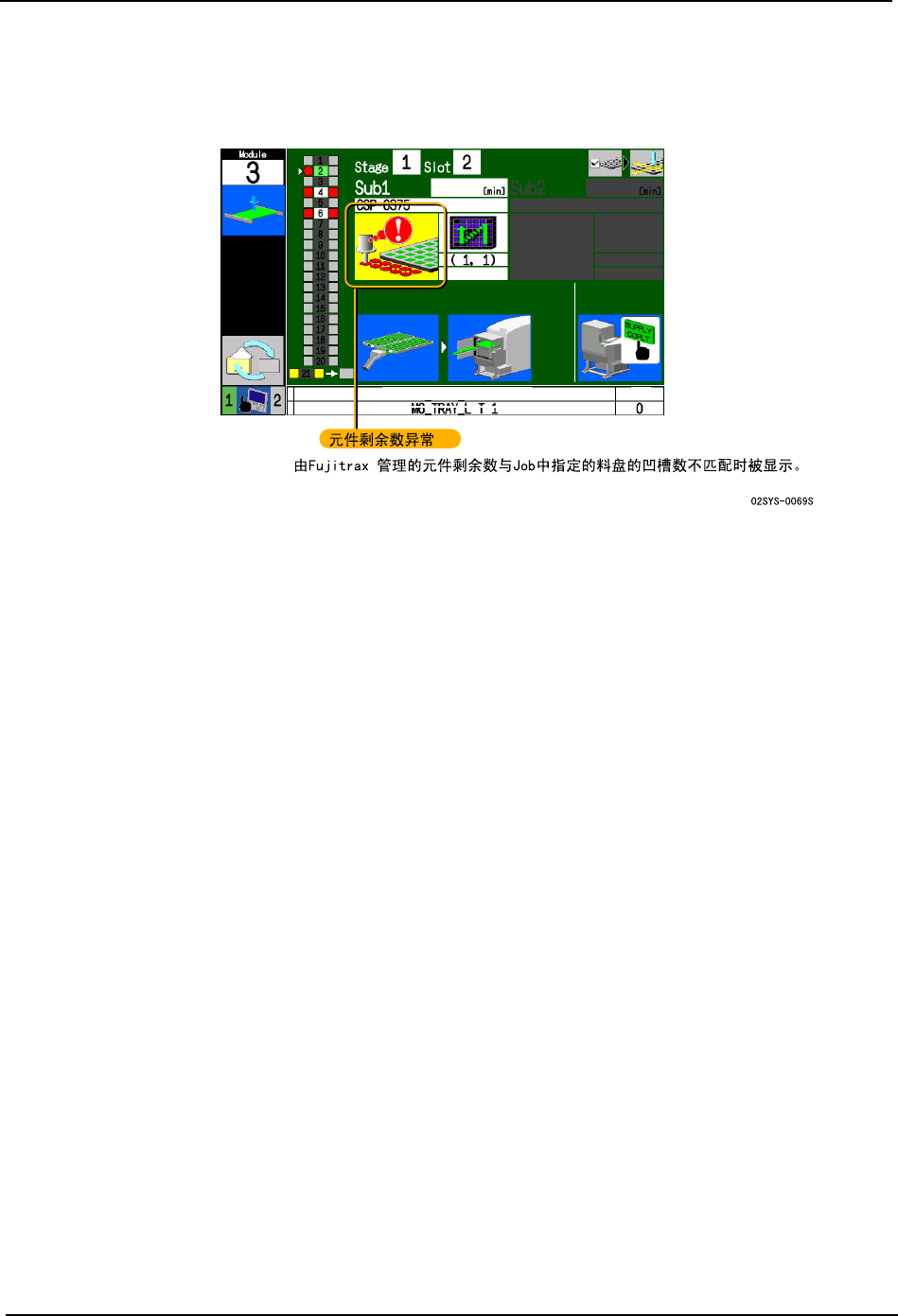 在显示料盘的补充向导画面时,对被安装的料盘的元件剩余数有异常的料站进行料盘元件剩