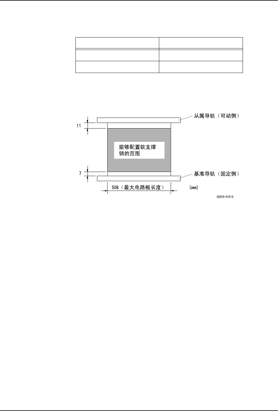 能够配置软支撑销的范围如下所示。如果电路板宽度为 50 ~ 60mm,请使用 AA1XH03 (30