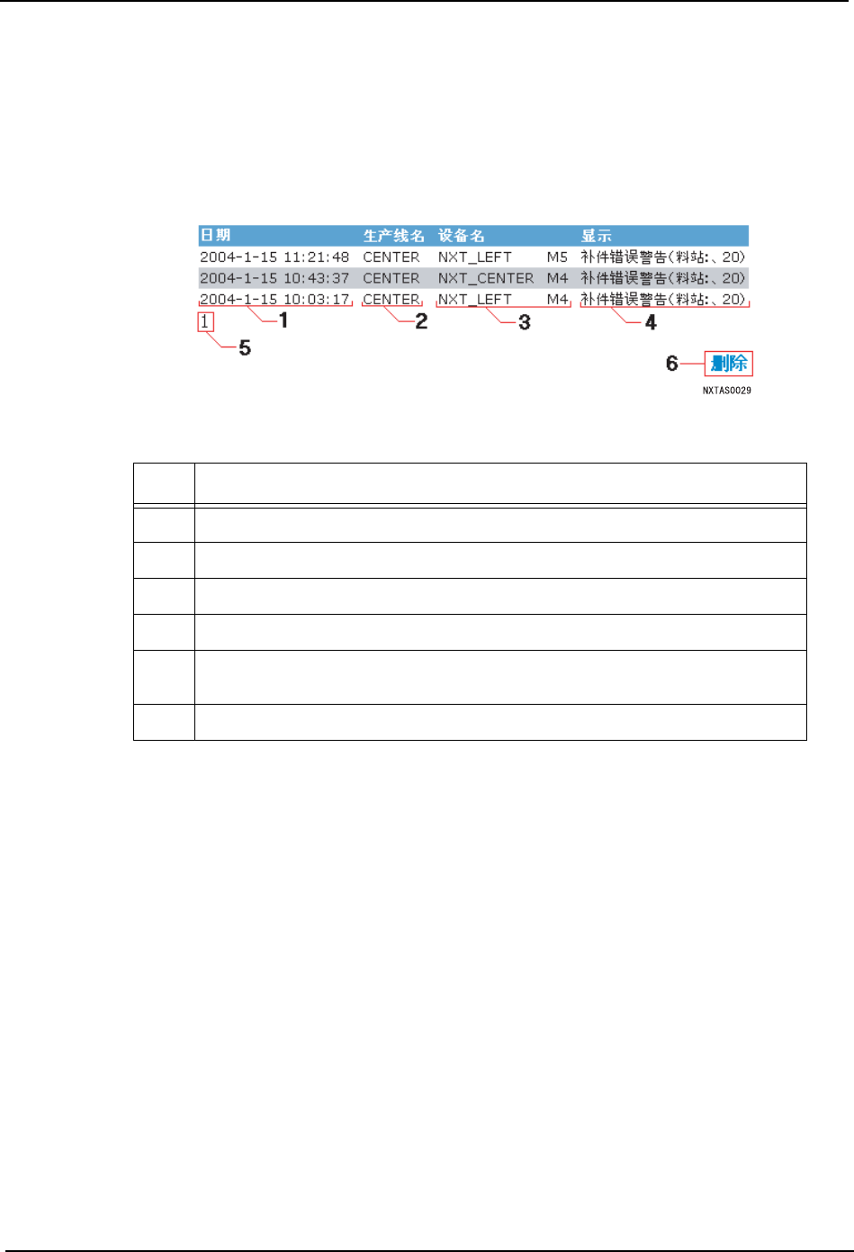 2 以一览表显示正在发生的警告信息。显示项目分别为生产线名、设备名、