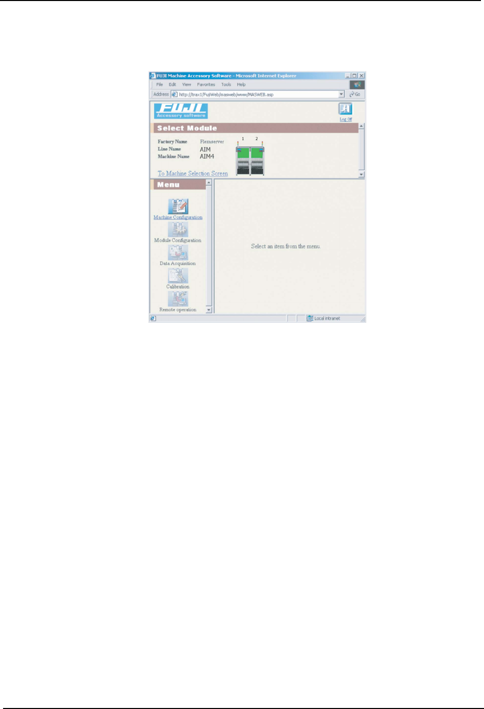 QD049-04 7. 附加软件 AIM 系统手册 209 3. 输 入用户的密码并单击 [Login]。 注册 后, 所选择的机器 / 模组 处于被选择的状态。 显 示 出机器附加画面。在画面的左下方显示出可以执行的指令, 在画面的右下方显示出有关 选择项目的详细内容。 AIMAS0017E A