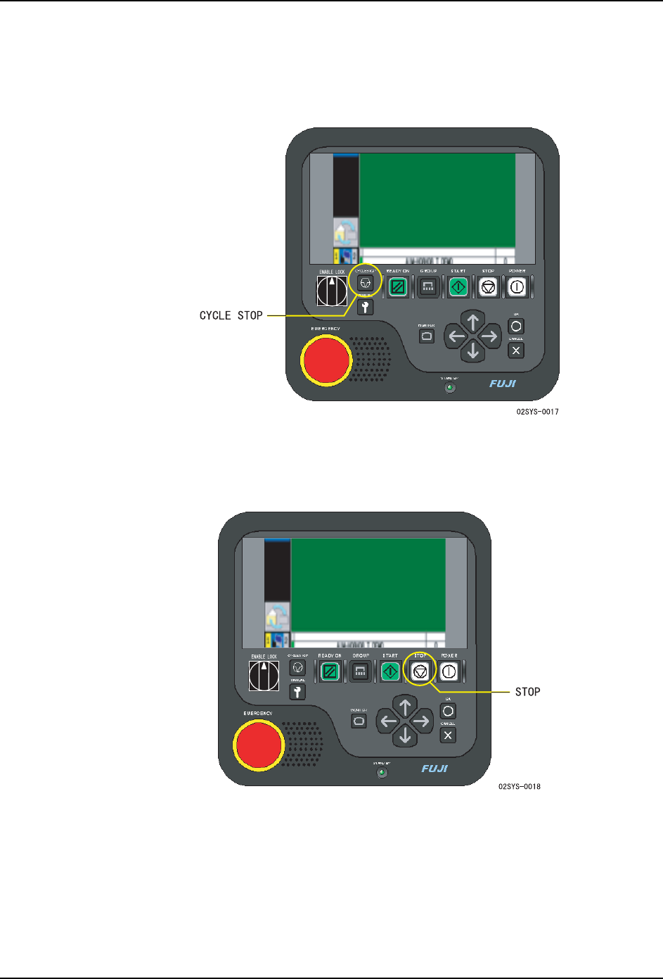 1. 请按下 “CYCLE STOP”。以机器的动作周期停止生产动作。