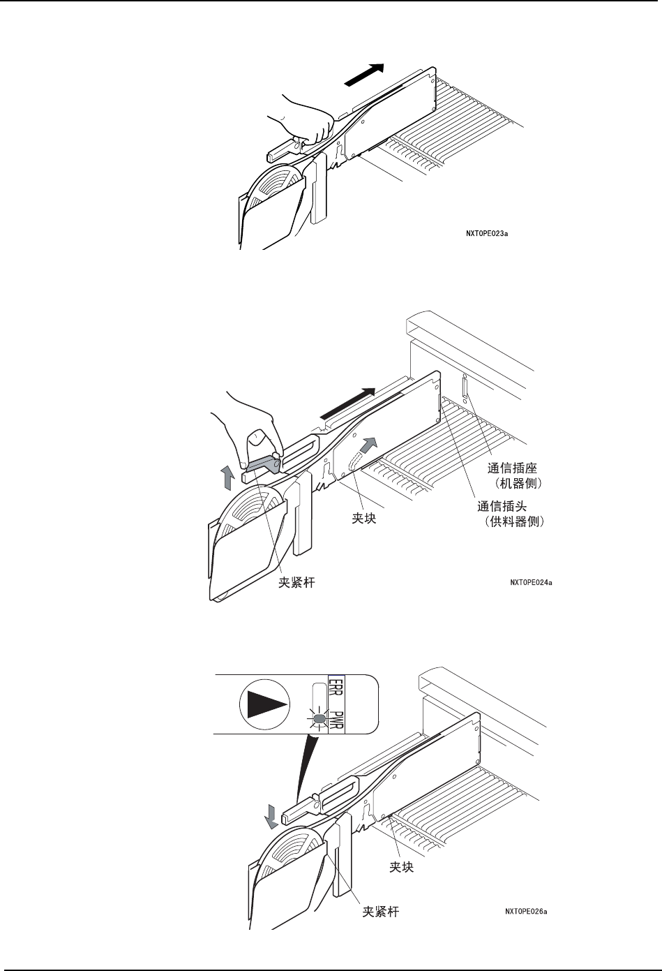 备注 ) 如果供料器被完全插到最里面,但夹块的锁定没有实际进行,就会造成设置在夹块部的传感器