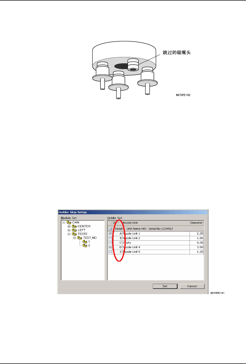 c. 被指定为吸嘴头跳过的吸嘴头会将吸嘴返回到吸嘴置放台中。由于故障而无法返回