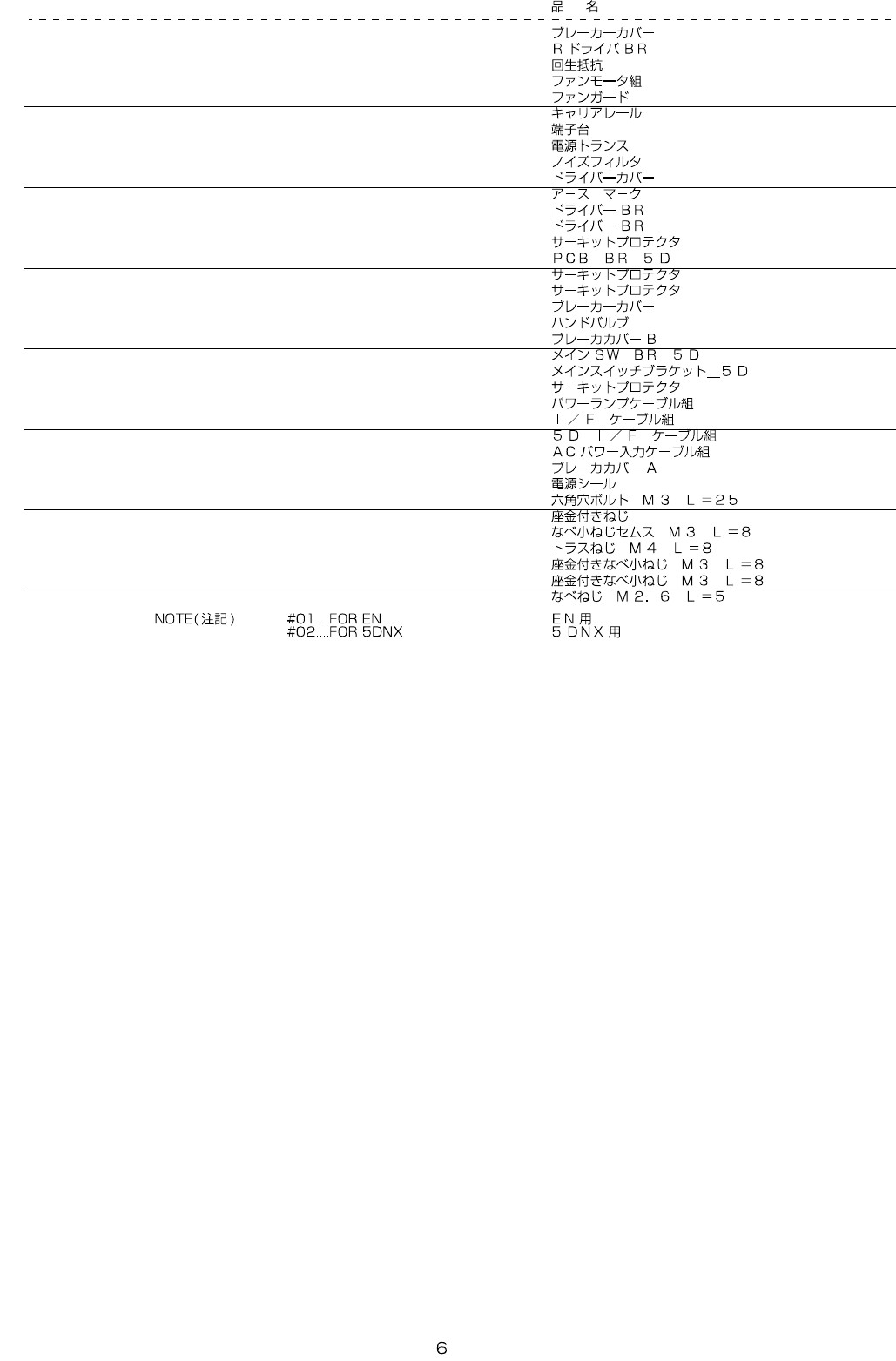 REF.NO NOTE PART NO D E S C R I P T I O N Qty