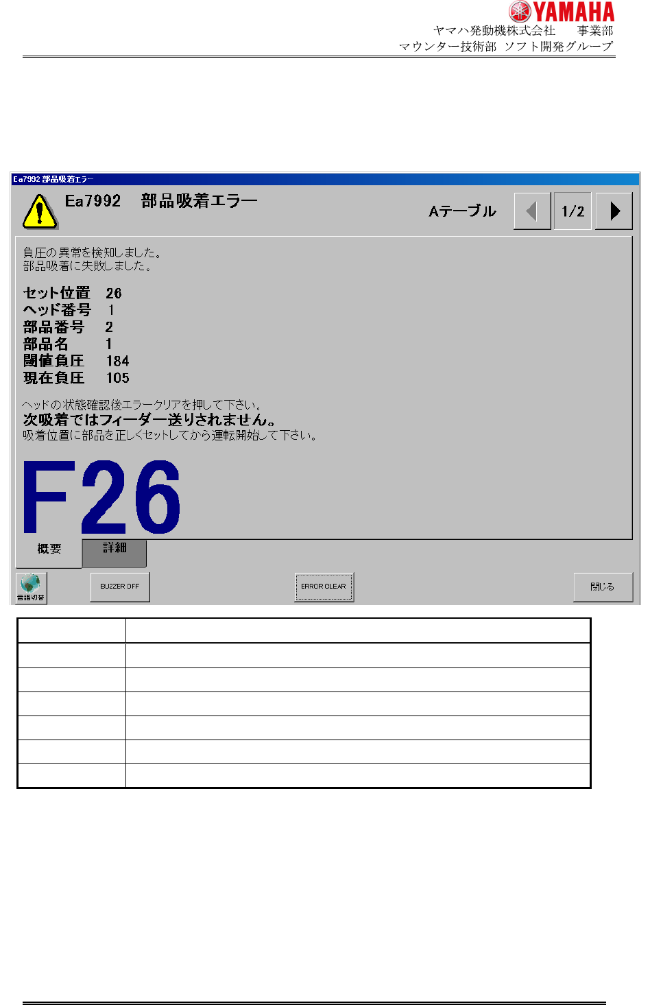 セット位置 負圧チェックエラーが発生したフィーダーセット番号を表示します。