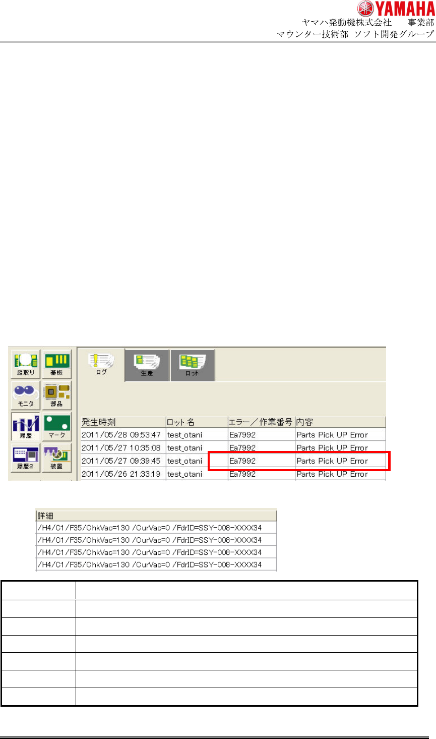 「Ea7992:部品吸着エラー」 が発生した場合、以下の履歴を出力します。