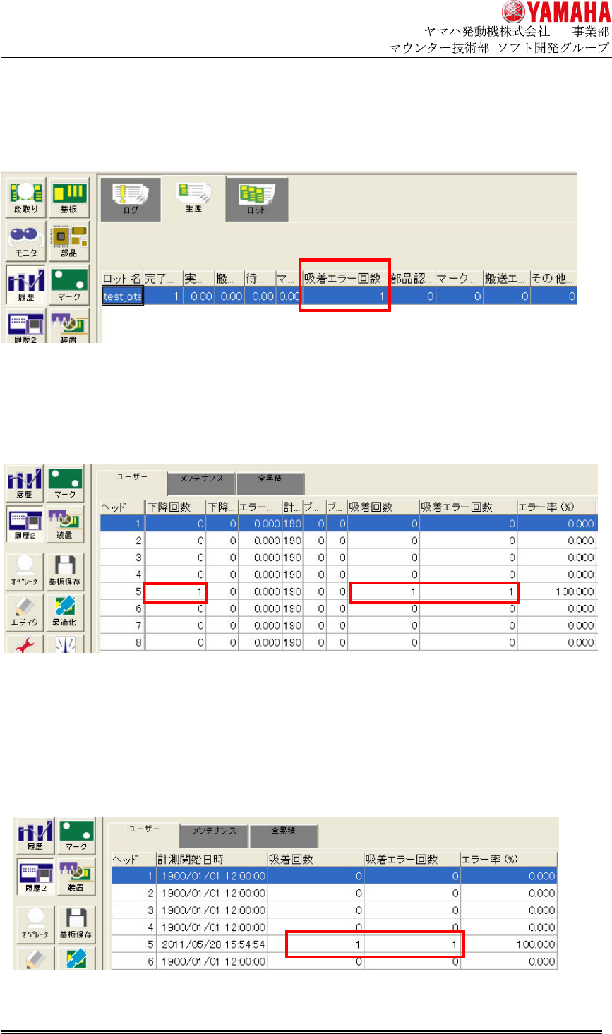 生産履歴の「吸着エラー回数」をカウントアップします。