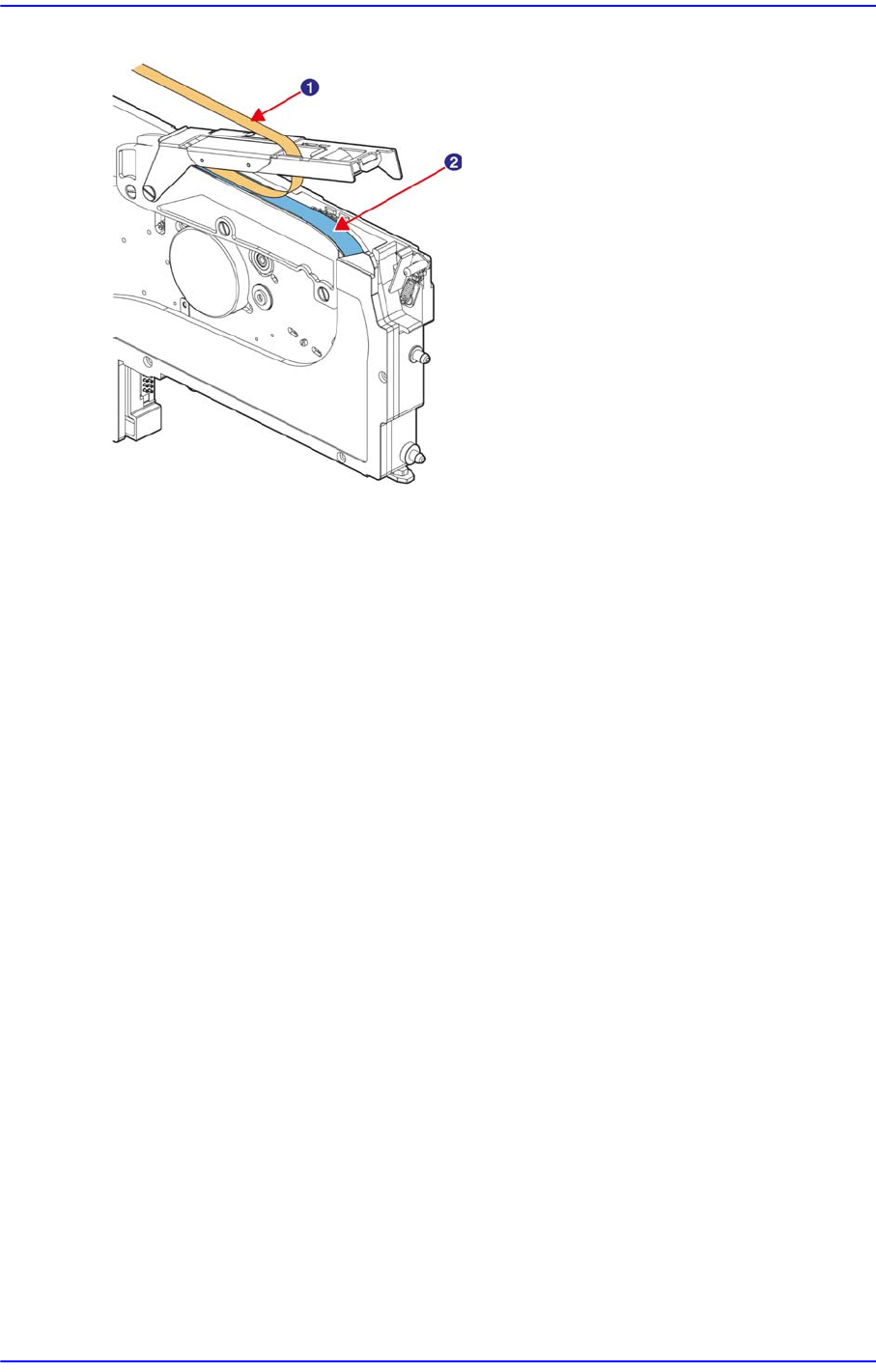 2-12 SM-Series SME 带式喂料带式器的操作手册 图 2.15 喂料器上盖卷带的设置 1: 上盖卷带 2: 传输卷带 使传送卷带通过槽 C 。
