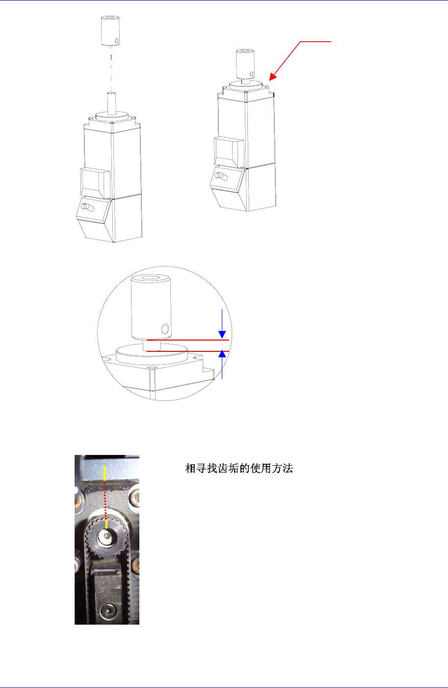6. 利用固定螺丝(M3-4个),把电动机固定到头部本体。此时,利用齿垢寻找Z相
