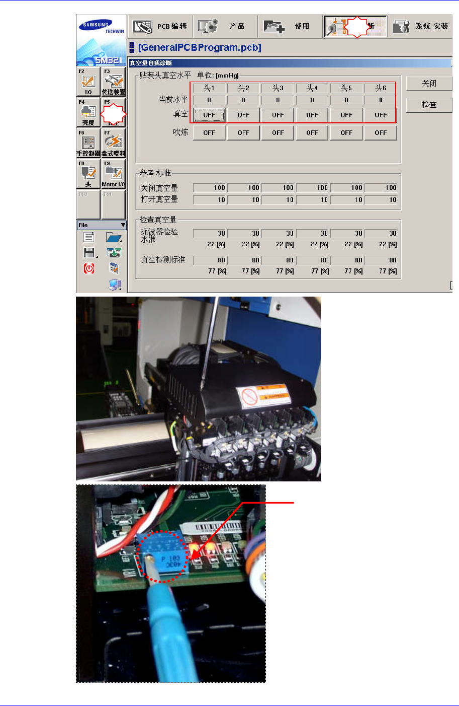 在未贴装喷嘴的状态下按各个Head打开Vacuum(真空装置)使Vacuum Level维