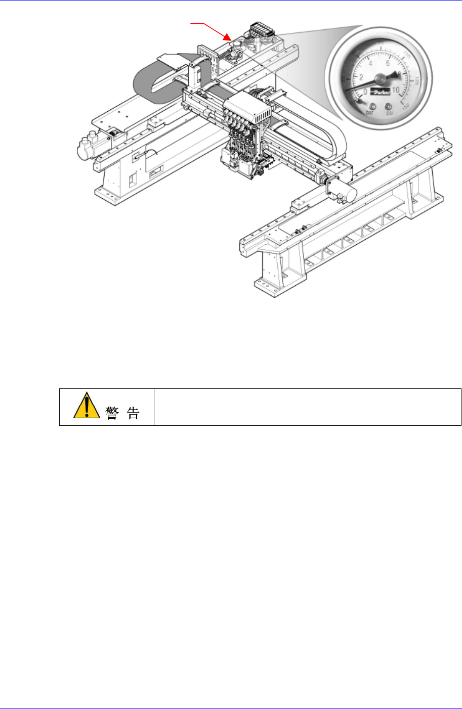 4. 转动Y1 Frame Ass’y后面的Blow Regulator调节把儿,供给压力升为 “0.5Mpa”