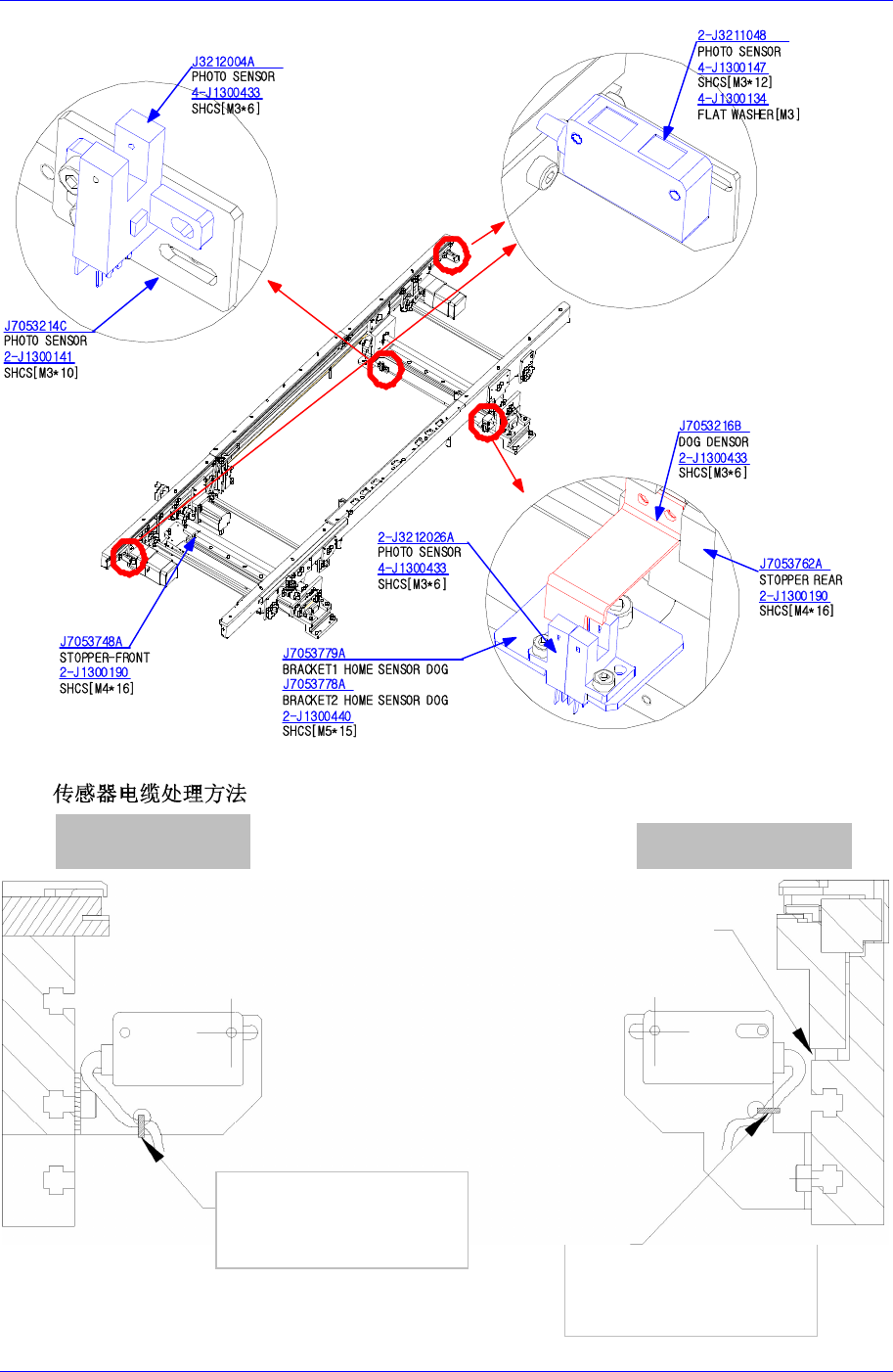 Samsung Component Plac er SM321 Service Manu al [PCB ] 确 保 传 感 器 电 缆 的 余 裕 后 , 用连接电缆固定 Clamp Unit 的 Up/Down 时 , 住 防止传感器电缆被夹 确 保 传 感 器 电 缆 的 余 裕 后 , 用连接 电缆固定 In / Out 传感器 W ait / W ork 传感器 5-12