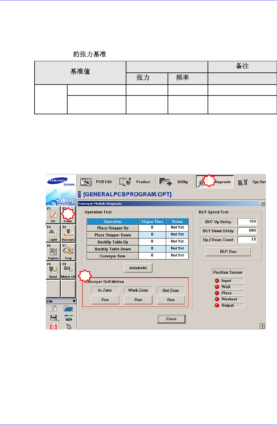 6. 为 确 认 是 否 正 常 工 作 , 请 执 行 “Conveyor Module Diagnosis” 对 话 框 。 在