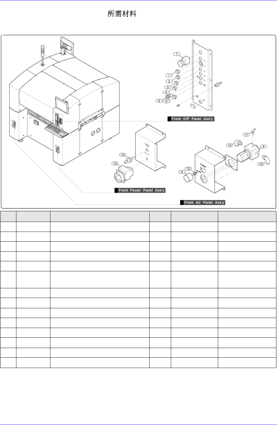 Electric Device 1 1-9 11.3. Function Panel A ss’y 11.3.1. Front Function Panel Ass’y NO. P ART NO. P ART NAME Q’TY TYPE REMARK 1 J3403085A READY SWITCH AS S’Y 1 61-1 100.0(CLEAR) Front, Rear Common 2 J3403078A ST ART SWI…