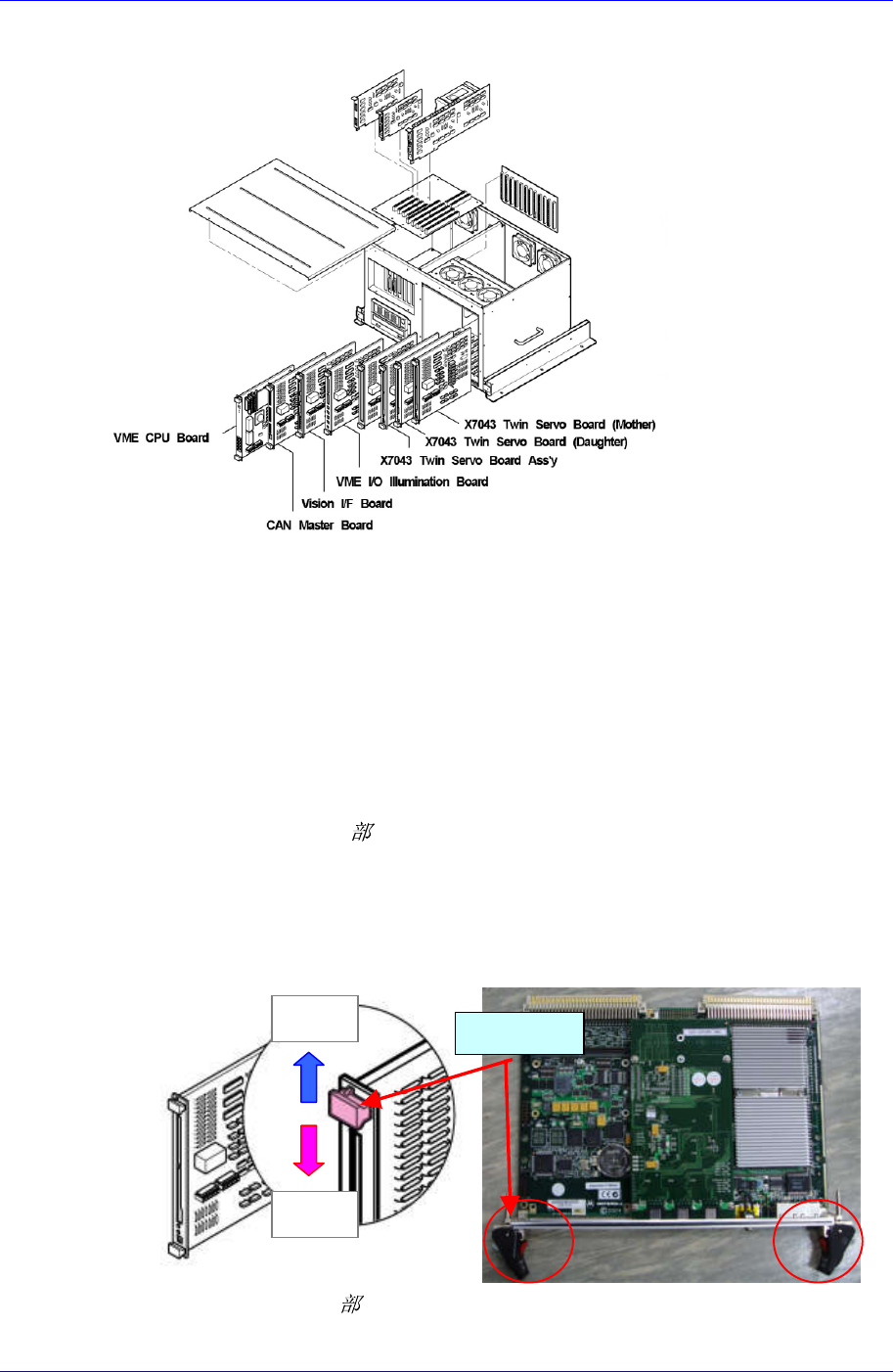 Boar d Ass’y 13.2.3. VME 部 Board Ass’y a ME ard Ass’y X7043 T win Servo Board (Daughter) X7043 13.2.3.1. VME 部 Bo ard Ass’y 替换次序 1. 请执行 替换次序 2. 请分离连接 在所要替换 Board 的电缆。 3. 利用螺丝刀 除去所要替换 Board 的固定 螺丝 (2 个 ) …