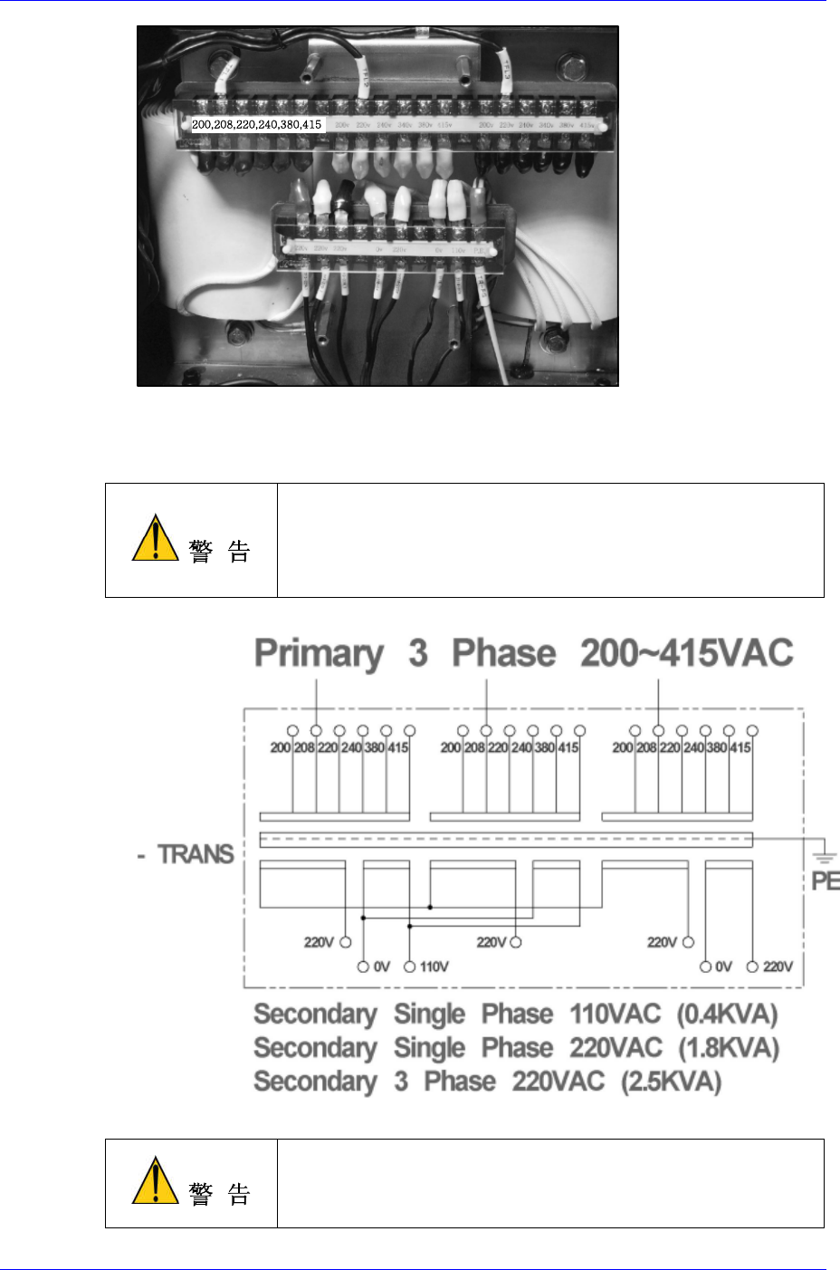 5. 在确认了设备变压器的原始状态后. 请把变压器的输入电压设置成与安装现场