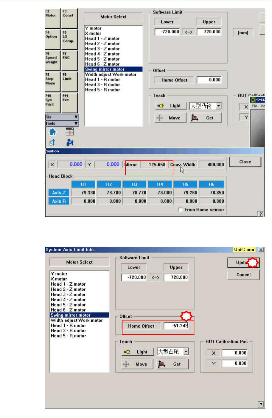 9. 上图‘Position’对话框中显示的Mirror值减去‘177’得值输入到‘System Axis Limit