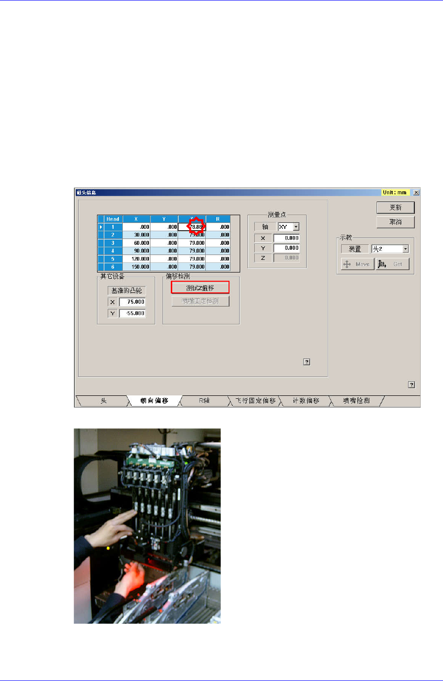 2. 在<Grid> 领域点击要执行校正Head的R轴,再点击 <喷嘴固定检测