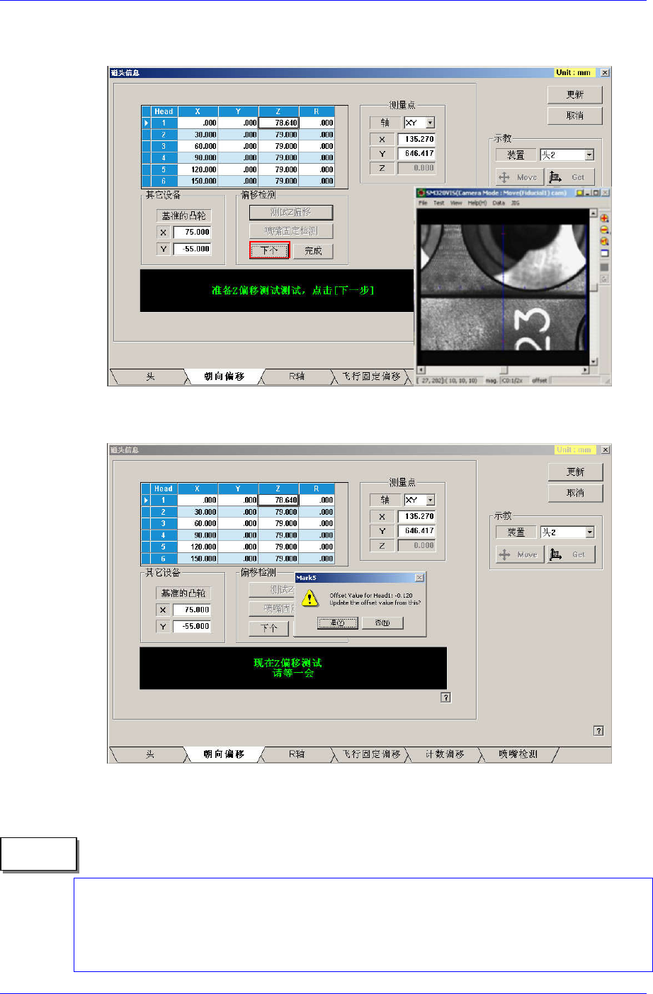 4. 点击<下个>按钮,Head 1移动到 ANC 顶面的任意位置。 (可指定位置)