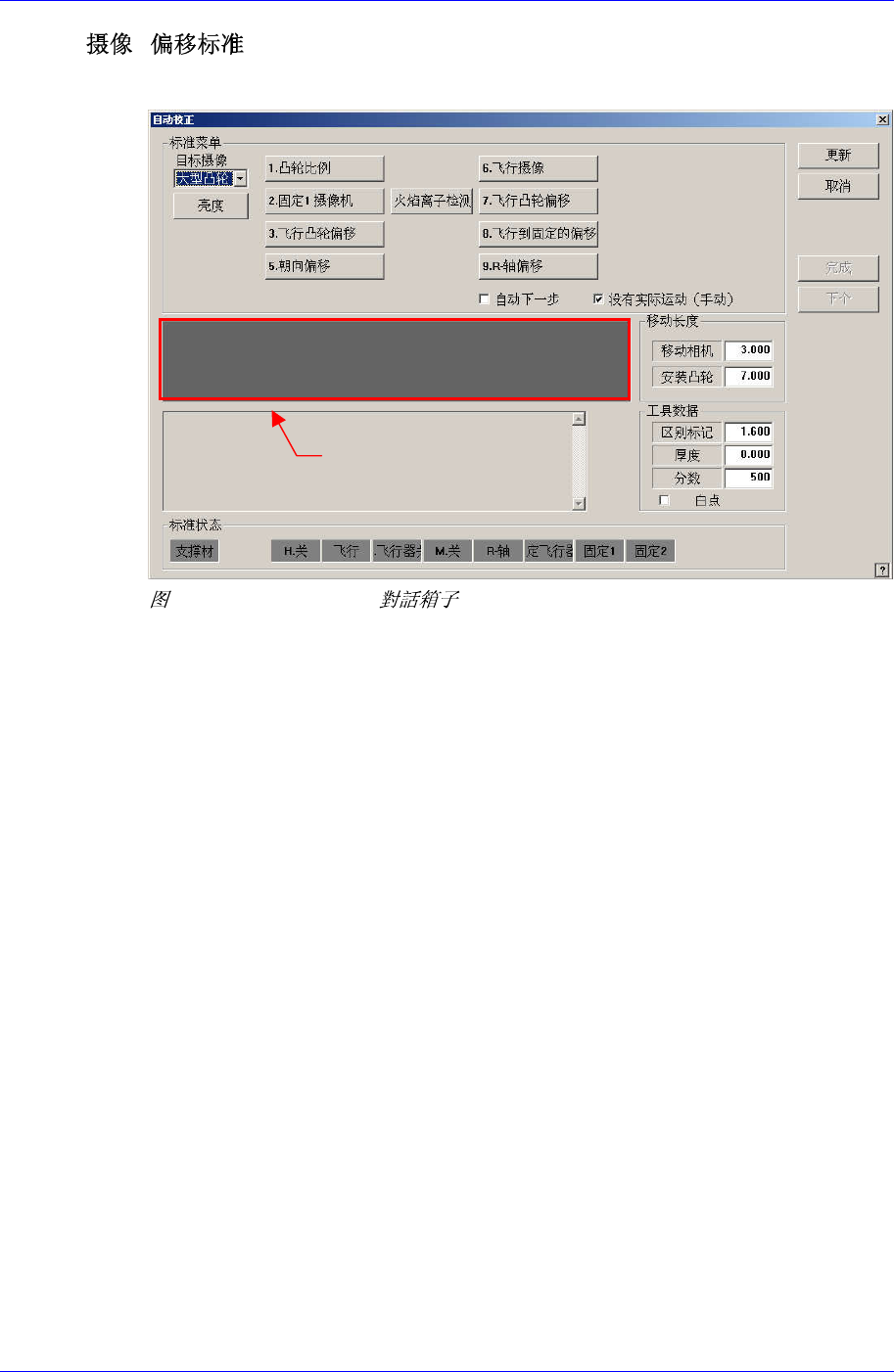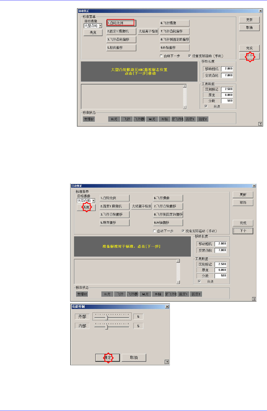 2. 点击<1. 凸轮比例>按钮则在消息窗显示 “大型凸轮移动至ANC基