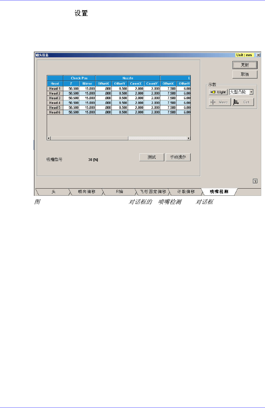 2. 在Nozzle Check TAP对话框单击<手动操作>按钮,执行“手动控制”