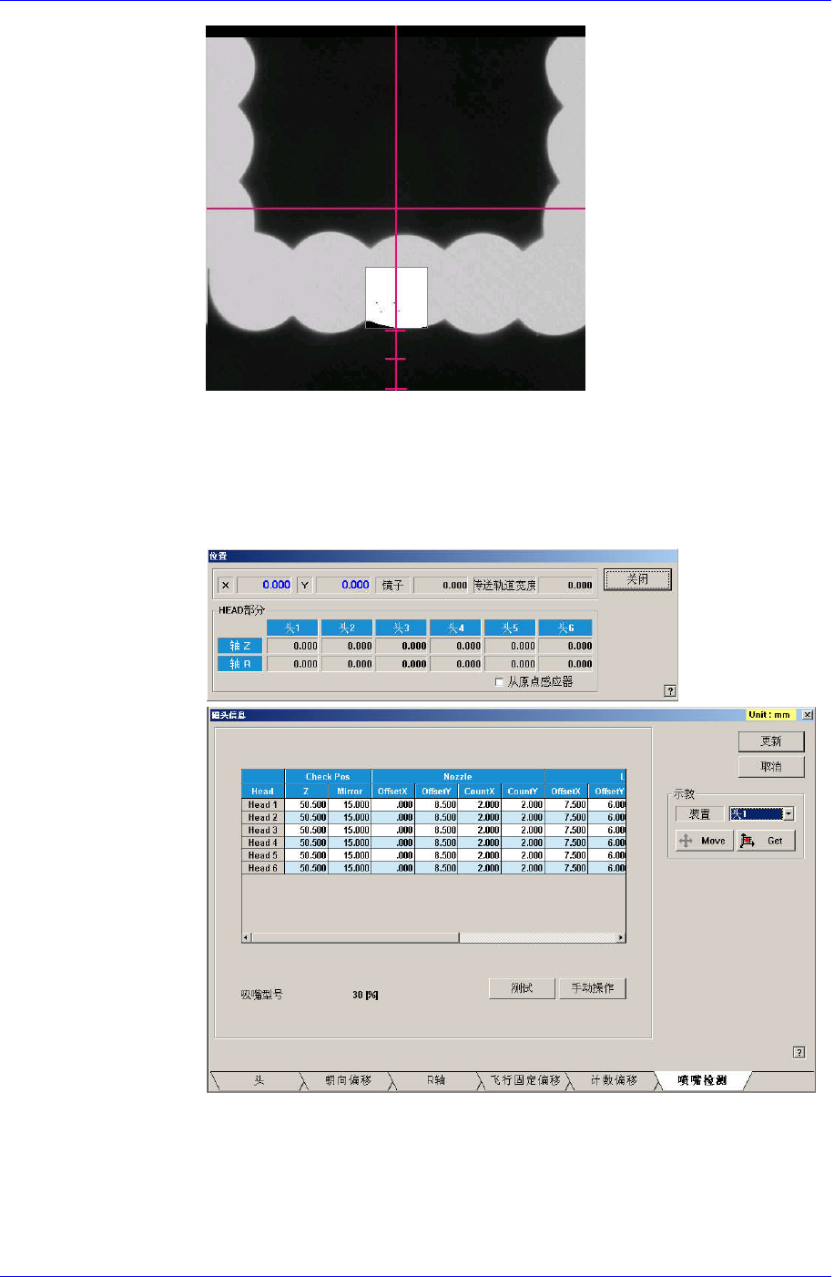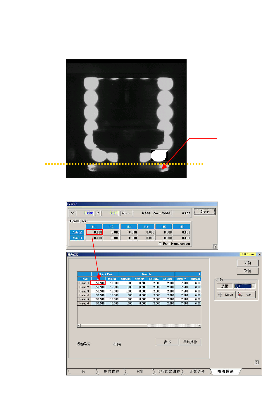 Calibration 如果是 FO V 15m m Fly Camera ,则把 LED 下端 对准 Visi on Mon itor 下端 刻度的第二个刻度。 6. 关闭 (Close)Manual Tools 对话框。 7. 这时,把 “位置” 对话 框的 Mir ror 值适用 到 Che ck P os 项 目的 Mirro r 值 上 。 Z 轴 高度的示教 (Head Z T eaching) 默认值为 50.5 。…