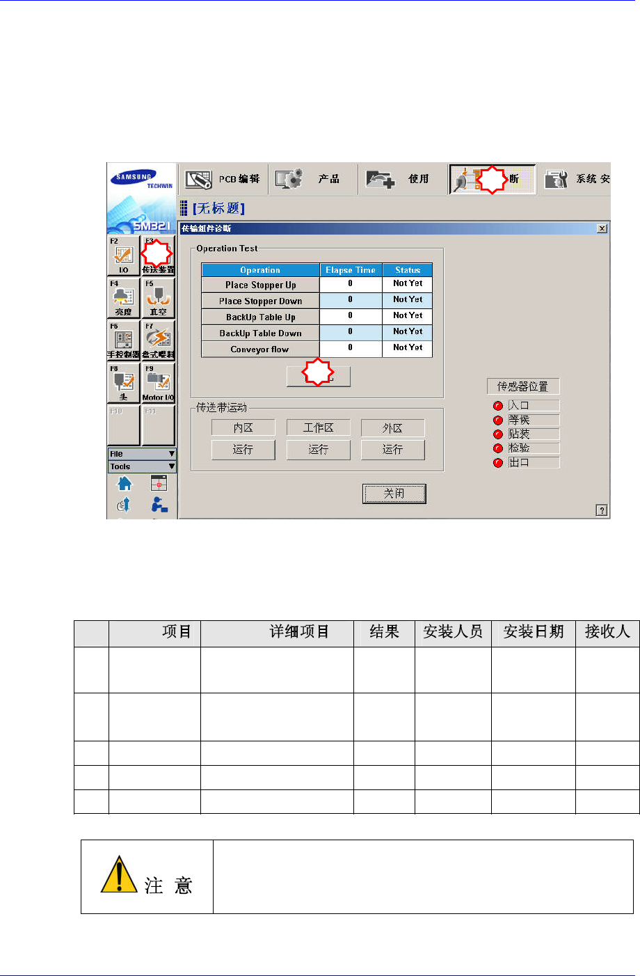 2. 为确认输送机传感器的正常工作与否,请通过输送机入口投入Test机板后启动