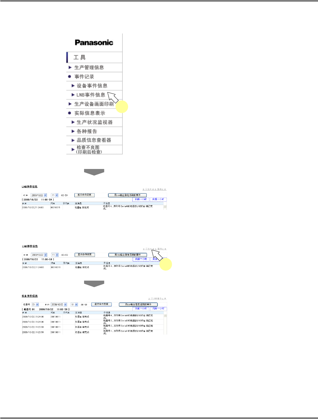 显示生产设备事件记录