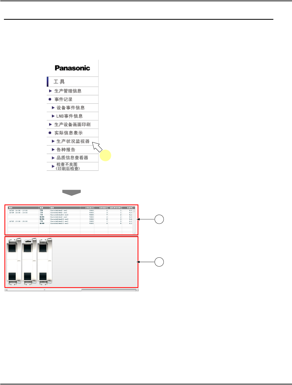 NPM-D LNB 3.5 实际信息表示 Page 3-24 EJM1DC-MB-03L-00 3.5 实际信息表示 参阅生产实际信息。 3.5.1 生产状况监视器 1 在菜单中选择 [ 实际信息表示 ] 的 [ 生产 状况监视器 ] 。 • 显示出生产状况监视器。 生产状况监视器由 c “ 作业管理部 ” 和 d “ 生产线状 况监视器部 ” 而构成。 关于显示内容和操作,请阅读下页以 后的解说。 3-1001 1 3-4001 1 …