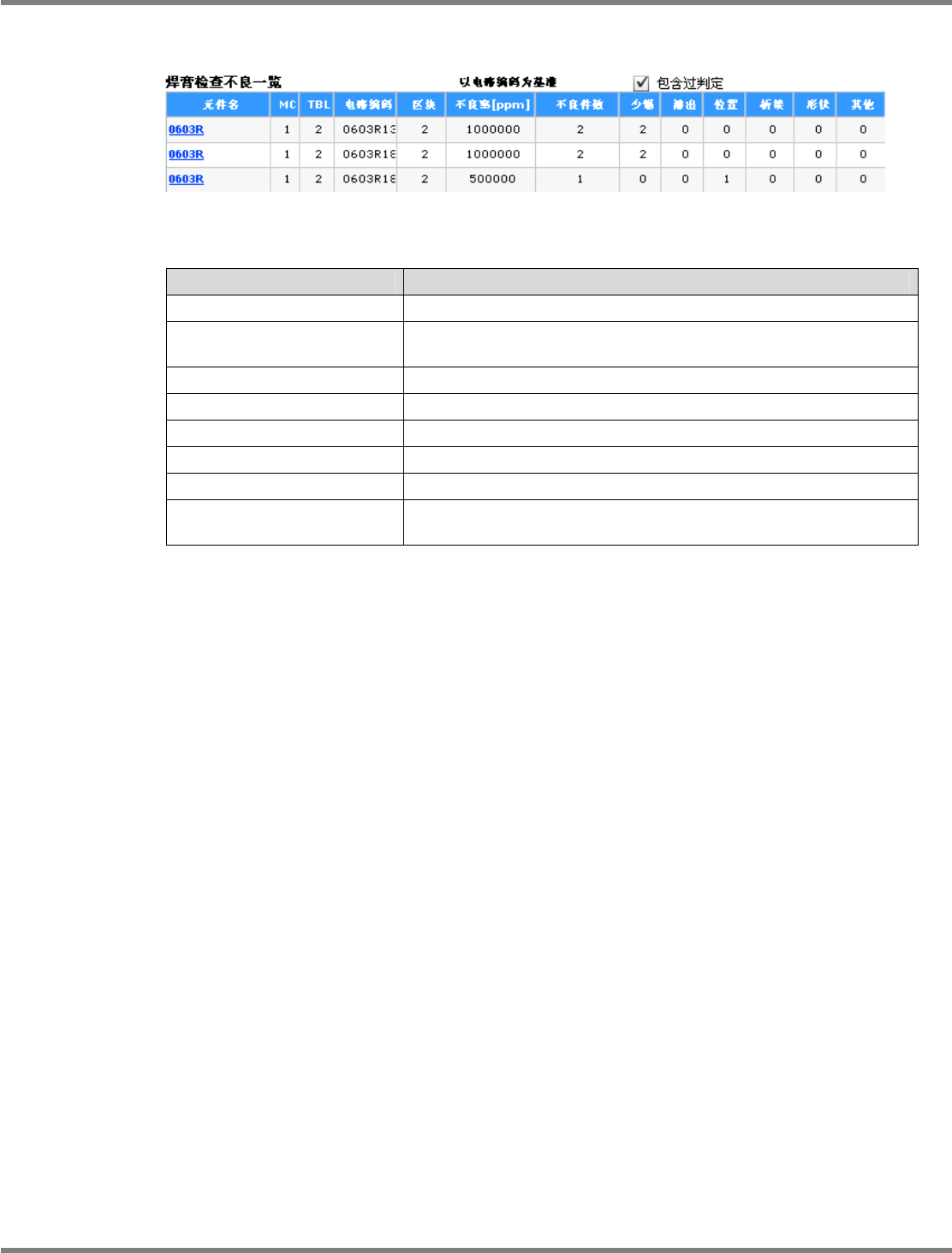 在焊膏检查不良一览中,将显示在印刷后检查所检测到的不良。