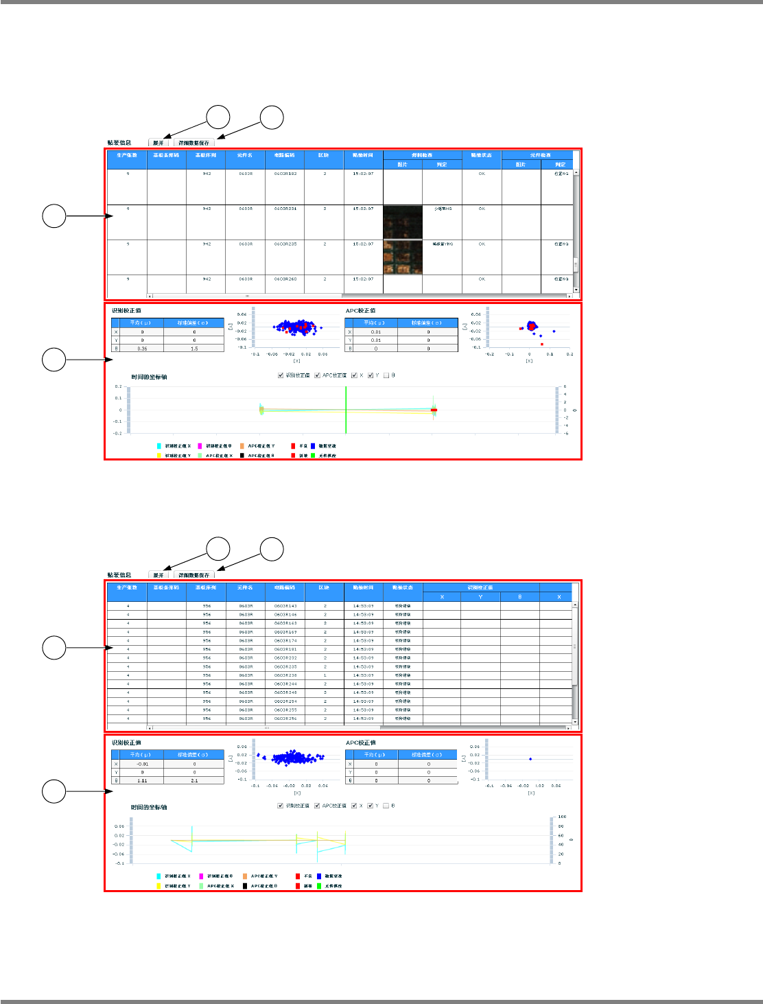 NPM-D LNB 3.5 实际信息表示 EJM1DC-MB-03L-00 Page 3-51 C) 元件数据画面 ① ‘ 元件名 ’ / ‘ 电路编码 ’ / ‘ 区块 ’ 显示数据显示对象的元件名称,以及 使用这个元件的电路编码和 区块。 只有在元件选择画面下,选择了 ‘ 电路编码 ’ 和 ‘ 区块 ’ 之际,才会显示。 ② ‘ 只显示变化点 ’ 通过勾选这个项目, 能够切换只显示发生了变化的元件, 还是显示全部元件。 发生了变化的…