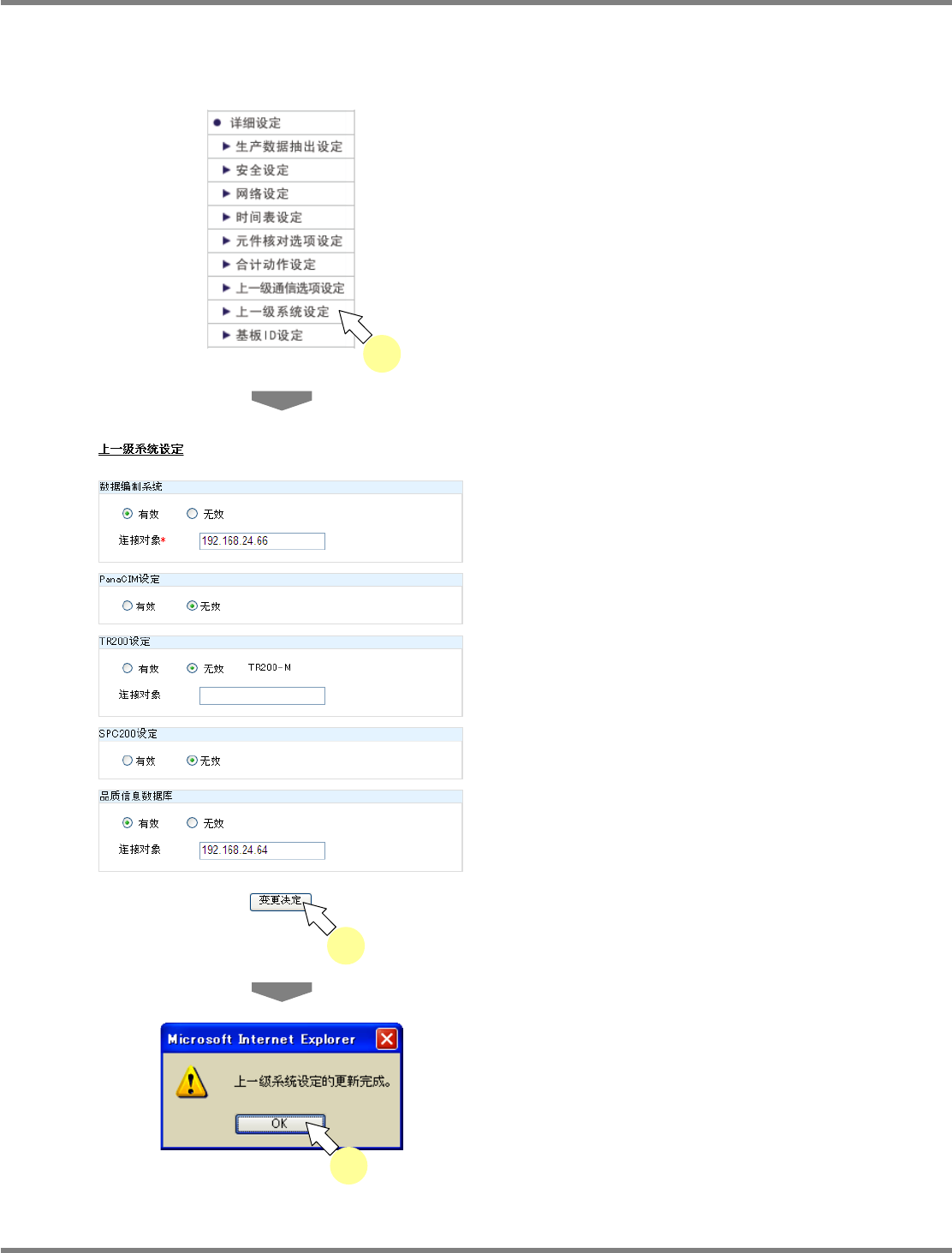 显示出上一级系统设定的更新完成的信息。