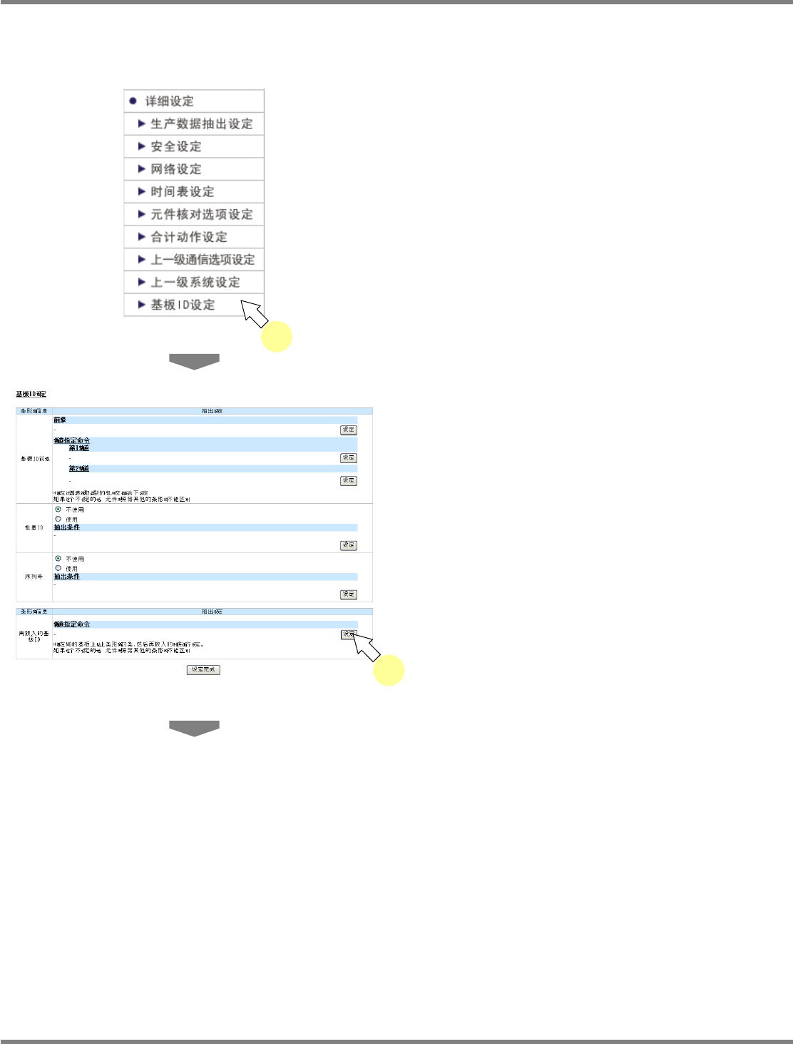 NPM-D LNB 4.3 详细设定 Page 4-20 EJM1DC-MB-04L-00 4.3.7 再放入基板 ID 设定 进行再放入基板 ID 的条形码设定。 1 在 < 菜单 > 中点击 [ 详细设定 ] 的 [ 基板 ID 设定 ] 。 • 显示出 < 基板 ID 设定 > 画面。 2 点击 “ 再放入的基板 ID” 栏的前缀的 [ 设 定 ] 。 • 显示出 < 条形码设定 > 画面。 4…