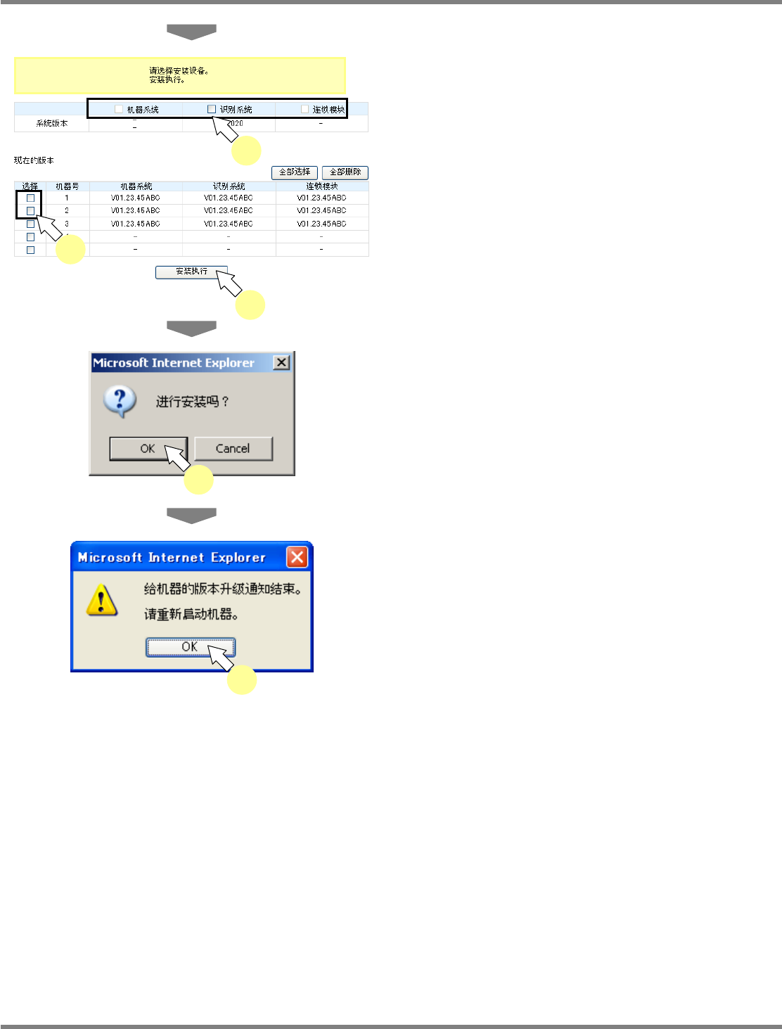 在版本升级的系统及设备的选框中打